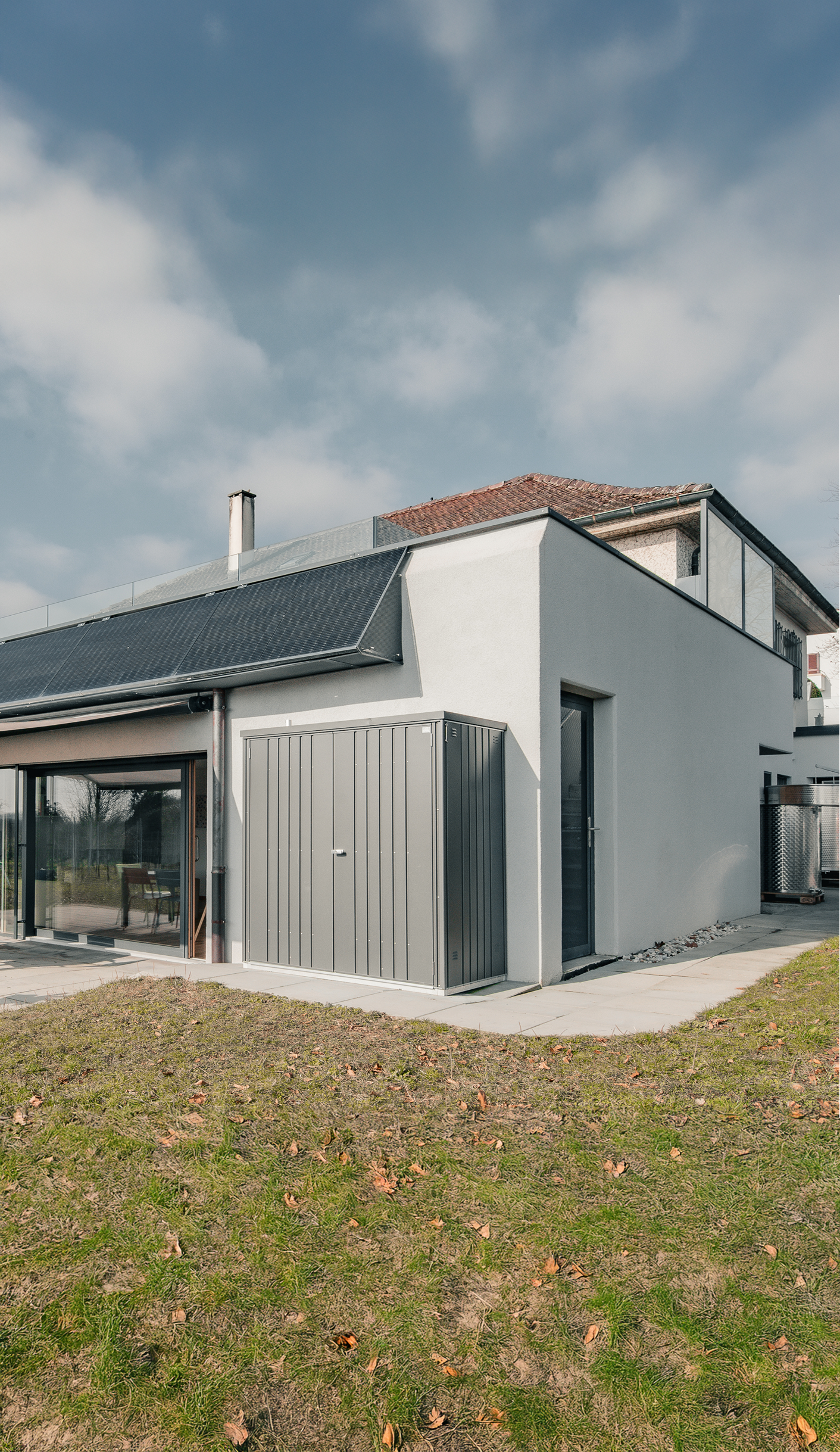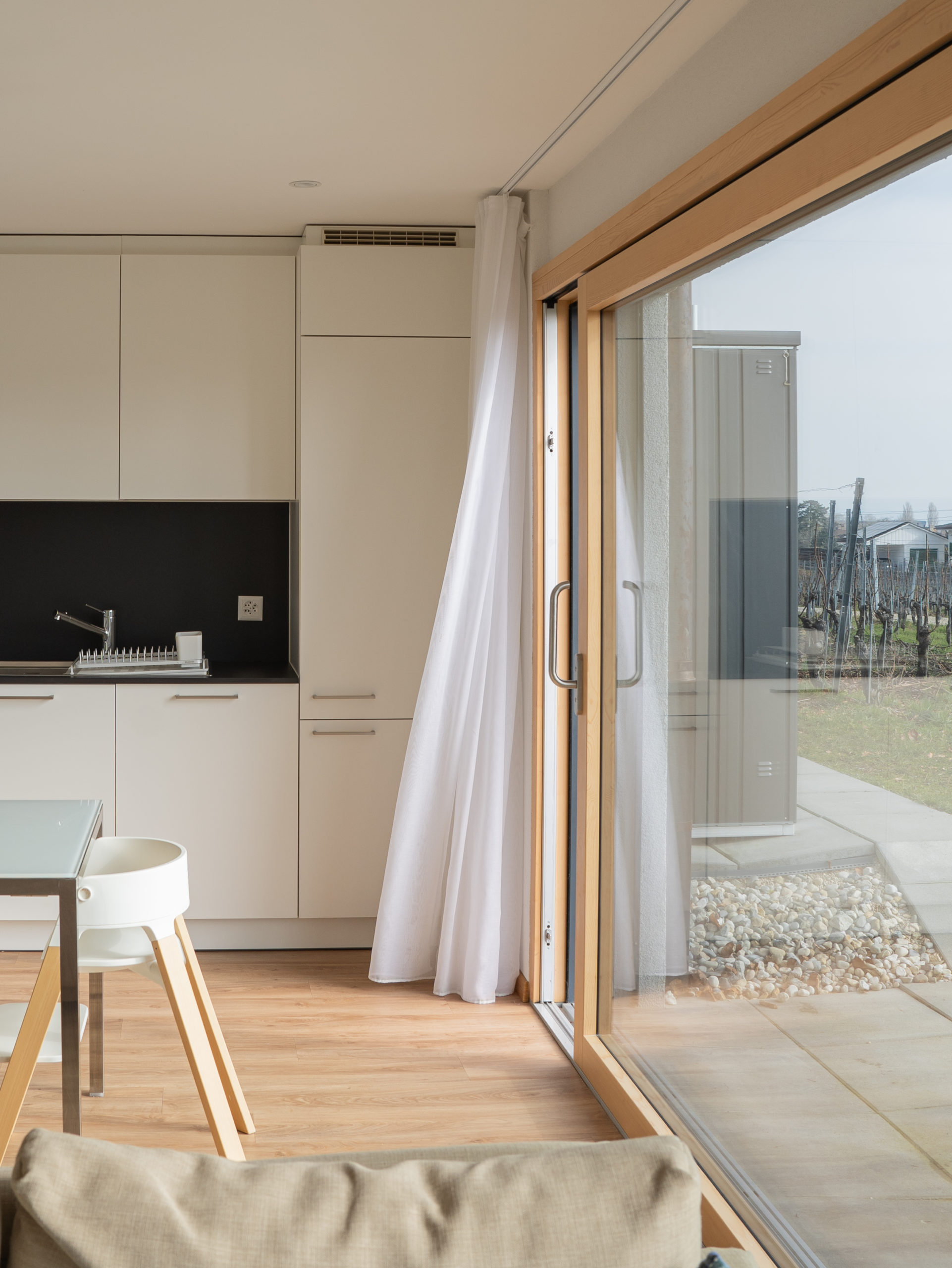 Une balustrade équipée de panneaux photovoltaïques optimise la production d’énergie renouvelable. Grâce à un regroupement dans le cadre de la consommation propre (RCP), la production photovoltaïque profite directement aux propriétaires et locataires des logements.